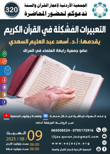 محاضرات صورة أسرار حروف فواتح السور في تنزيه كلام الله وفي أسماء القرآن وإنزاله وجعله عربيّا صورة صيغ الأفعال الكلامية في القرآن الكريم - (سورة الماعون، الكوثر، والعلق أنموذجًا) صورة من صور الاعجاز البياني في مطالع سورة الاسراء صورة الإعجاز الصوتي في القرآن الكريم صورة الإعجاز في أقصر السور سورة الكوثر صورة رؤية إسلامية للإقتصاد العالمي الإعجاز التشريعي صورة التعبيرات المُشْكِلَة في القرآن الكريم صورة الإعجاز العلمي في القرآن والسنة وأثره في ترسيخ الإيمان الإعجاز العلمي صورة صور الإعجاز التشريعي والتربوي في سورة الطلاق الإعجاز التشريعي صورة الإعجاز البياني في السبع المثاني الإعجاز التشريعي صورة فأسكناهُ في الأرض الإعجاز التأثيري صورة هُوَ الَّذِي جَعَلَ الشَّمْسَ ضِيَاءً وَالْقَمَرَ نُورًا الإعجاز التأثيري Pagination First page Previous page Page 1 Page 2 Page 3 Current page 4 Page 5 Page 6 Page 7 Page 8 Page 9 … Next page Last page